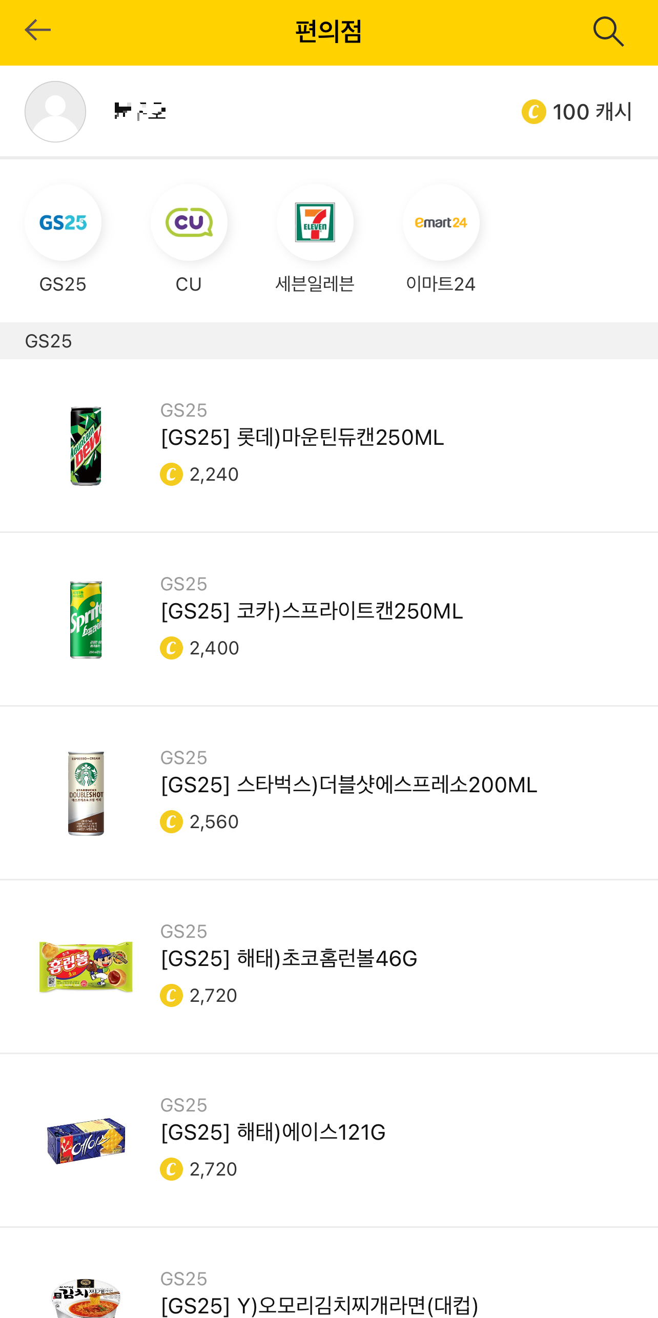 이렇게 적립된 캐시 포인트를 사용하고 싶다면 하단의 모바일 교환권에 들어가 보세요. 사용처는 캐시딜 상품권, 카페/베이커리, 외식, 편의점, 문화생활으로 카테고리가 구분되어 있는데 우리가 이용하는 대형 프렌차이저는 대부분 제휴되어 있어 편하게 쓸 수 있어요. 본인 지역 때문에 사용할 곳이 없다면 편의점에서만 사용해도 정말 요긴하게 쓸 수 있는 것 같아요.