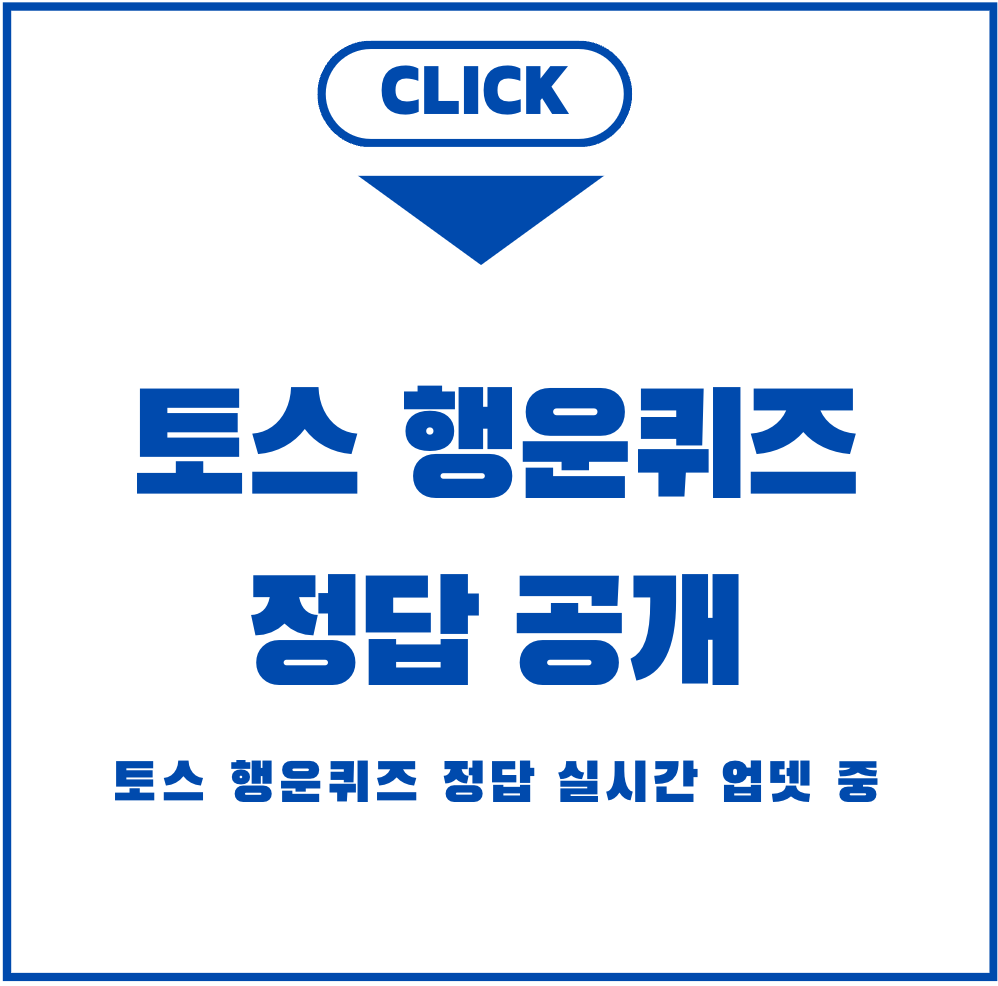 혹시 토스 행운퀴즈를 하고 계신가요? 토스 퀴즈는 쉬운 문제이지만 정답을 틀리면 속상할 때도 있는데요. 그래서 제가 매번 토스 행운퀴즈 정답을 업데이트해 드리고 잇어요. 실시간으로 업데이트하고 있으니 아래로 조금만 내려면 오늘자 정답을 금방 찾을 수 있을거에요. 혹시 토스 행운퀴즈를 한 번도 안해봤다면 퀴즈 참여 방법 참고하시고 많은 상금을 가져갈 수 있는 팁도 가져가세요.